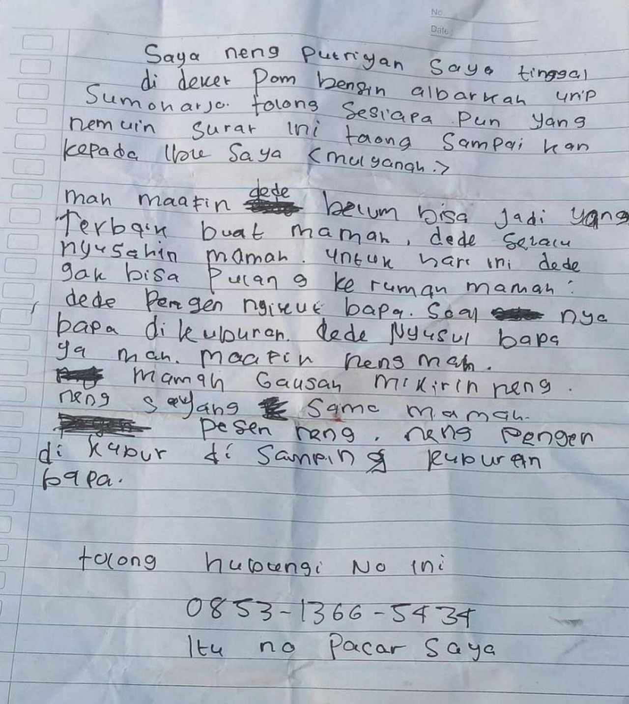 "Ditemukan surat wasiat yang ditulis korban. Menghubungi pihak keluarga almarhum, membawa jenazah ke RSUD Kabupaten Bekasi," tuturnya.to