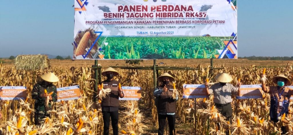 TUBAN (Realita) - Melalui Dinas Pertanian dan Ketahanan Pangan (DPKP) bidang tanaman pangan kabupaten Tuban, terus mengembangkan Pembenihan bibit jagung hibrida RK 457 yang bekerja sama dengan PT TWINN Kediri Jawa Timur, Kamis (12/8/2021).