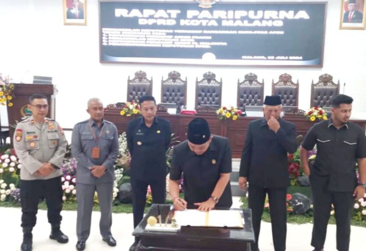 KOTA MALANG (Realita) - Dewan Perwakilan Rakyat Daerah (DPRD) Kota Malang menyetujui dan sahkan rancangan Kebijakan Umum Perubahan APBD Prioritas, dan Plafon Anggaran Sementara (KUPA-PPAS) APBD tahun anggaran 2024, dalam Rapat Paripurna yang dilaksanakan di Gedung DPRD Kota Malang, Kamis (25/7/2024).