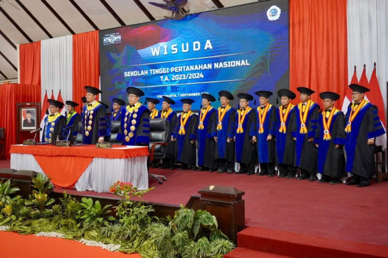 Turut mendampingi Menteri ATR/Kepala BPN dalam momen wisuda ini, Sekretaris Jenderal Kementerian ATR/BPN, Suyus Windayana dan Ketua STPN, Agustyarsyah. Wisuda juga dihadiri oleh para Pejabat Pimpinan Tinggi Madya dan Pratama Kementerian ATR/BPN; para dosen dan senat STPN; serta seluruh orang tua wisudawan. (YS/PHAL)/Fauzi.