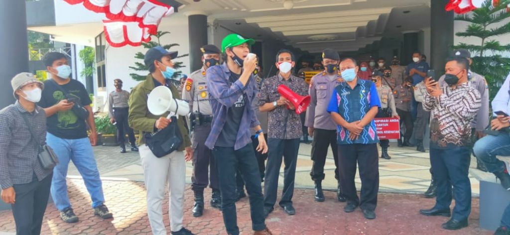 Masa aksi tersebut menuntut agar wakil rakyat segera mengklarifikasi terkait rapat yang digelar di luar kota di tengah pandemi Covid-19. Di saat ada aturan pemberlakuan PPKM Darurat di mana rakyat dipaksa untuk di rumah saja tetapi Dewan Wakil Rakyat kita malah justru jalan-jalan keluar kota.