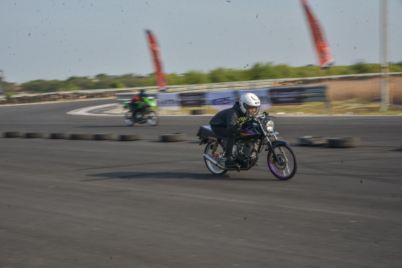 “Sepeda motore gak onok batase, gak onok lampune, onok sing reme mburi tok, wis nggak opo nang jero kene pokoke gak mang embong (motornya tidak ada batasan, ada yang nggak ada lampunya, ada yang remnya cuma belakang saja, sudah nggak apa kan hanya di dalam sini (Sirkuit GBT) asalkan tidak di jalan raya,” sebutnya.