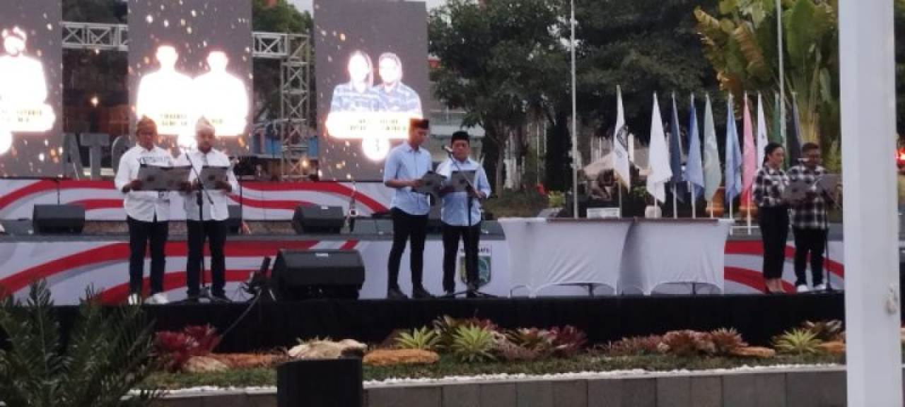 Penandatangan ikrar damai di ikuti pasangan, nomer urut 1 Nurochman-Heli Suyanto, nomer urut 2 Firhando Gumelar-H.Rudi, nomer urut 3 Kris Dayanti-Kresna Dewanata Phrosakh.