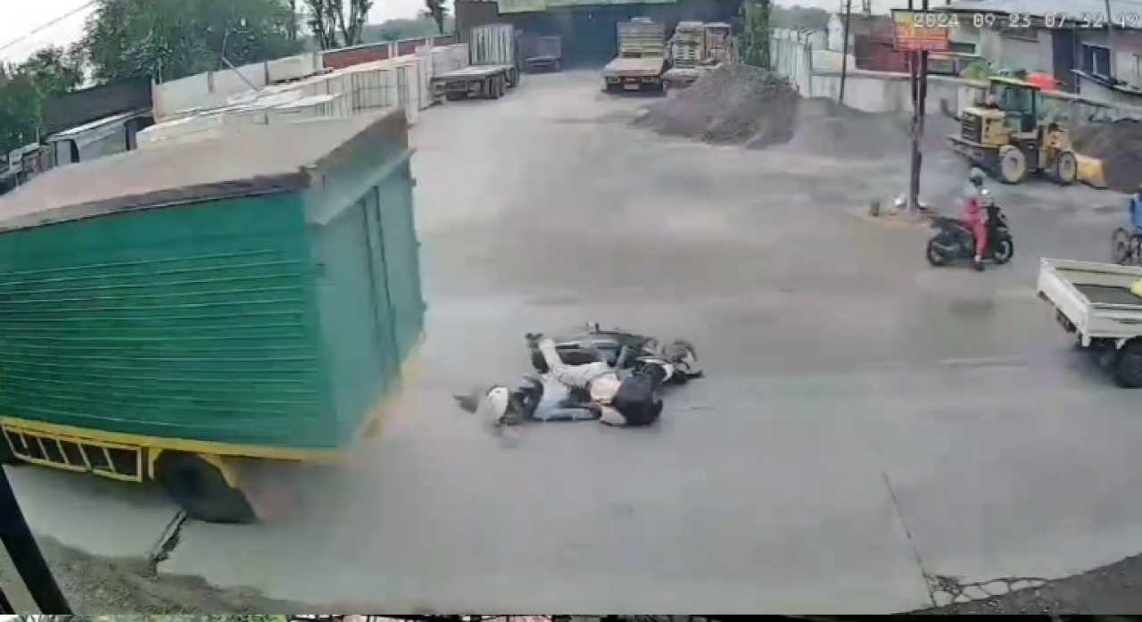 Sedangkan dari rekaman CCTV dari toko bangunan di lokasi kejadian. Terlihat motor korban oleng ke kanan, diduga karena licin adanya genangan sisa hujan semalam.