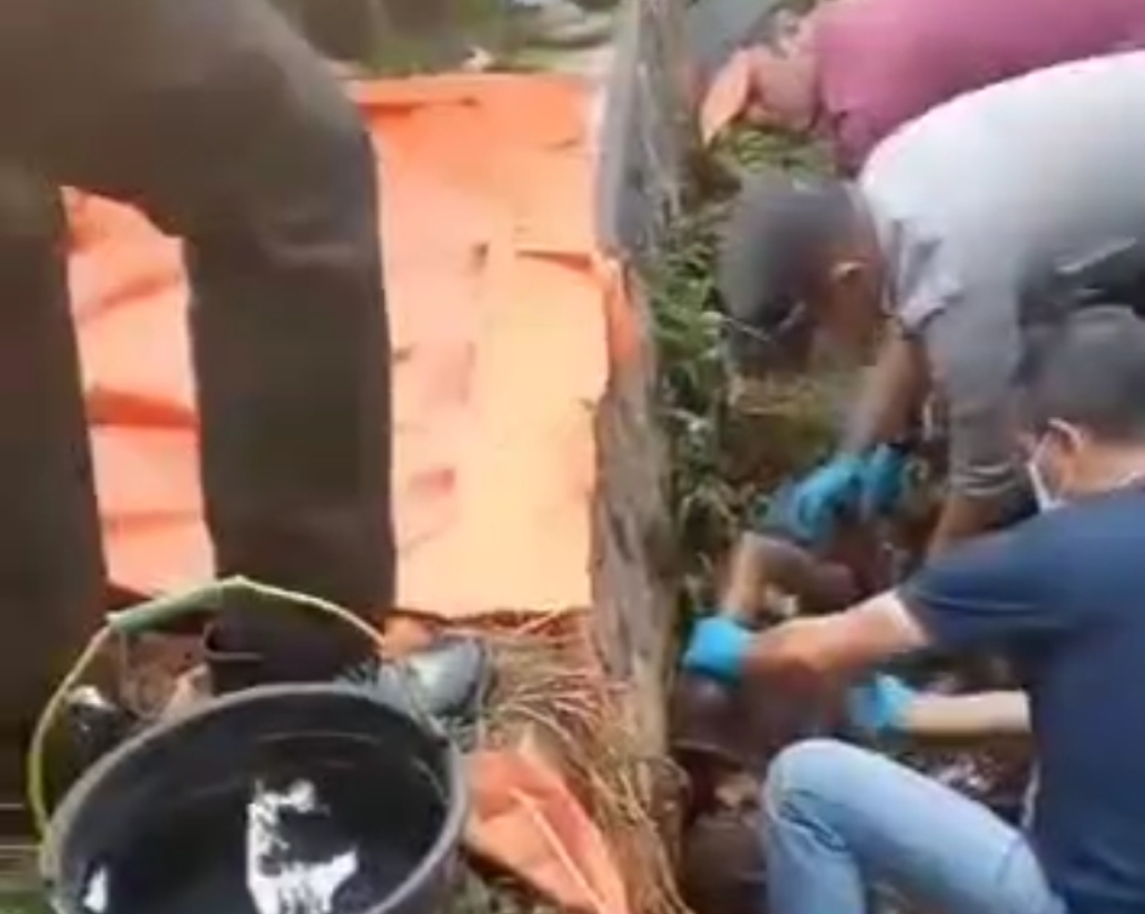 Dari pantauan, warga setempat langsung berkumpul di TKP. Video penemuan mayat pun tersebar di medsos.je