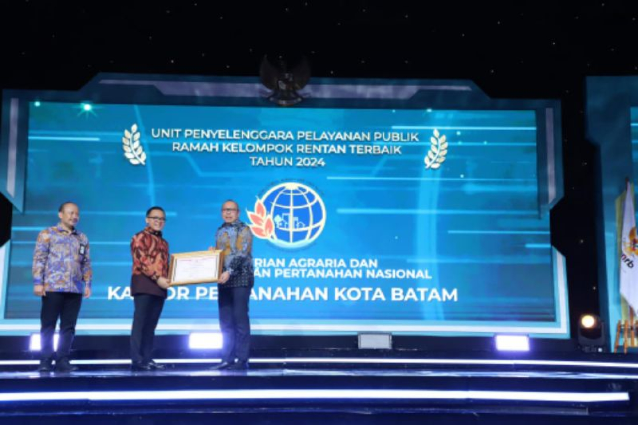 Penghargaan kedua ialah kategori Penyelenggara Pelayanan Publik Ramah Kelompok Rentan Terbaik Tahun 2024 untuk Kantah Kota Batam. Kementerian PAN-RB menilai, Kantah Kota Batam telah menyediakan fasilitas-fasilitas yang membantu kelompok rentan, antara lain terdapat buku panduan dengan huruf braille untuk penyandang tunanetra dan _guiding block_ menuju Loket Prioritas.