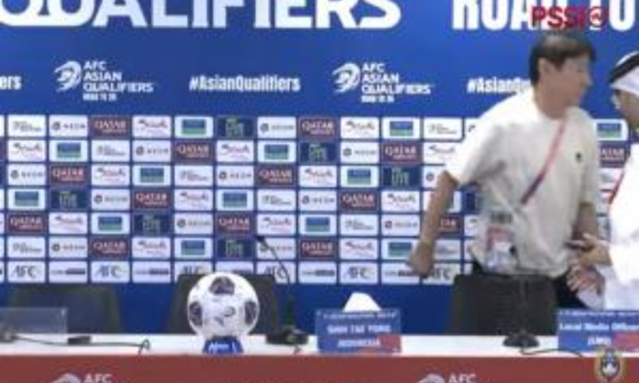 Dalam momen jumpa pers itu, seperti biasa, ada panitia pertandingan (LOC) dari Bahrain selaku tuan rumah. Saat Shin Tae-yong sudah selesai memberikan penyataannya, dirinya berdiri meninggalkan kursi.