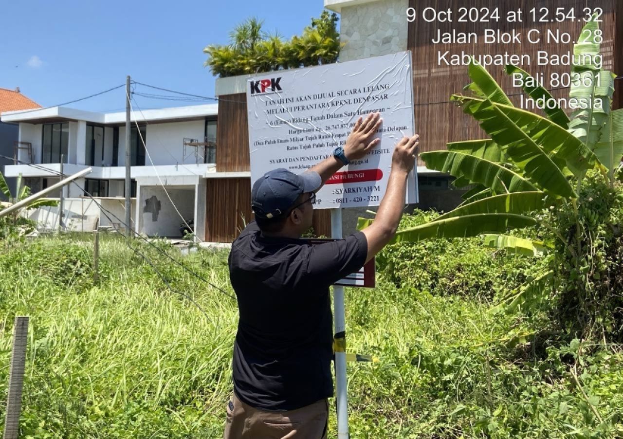 DENPASAR (Realita) - Rumah Penyimpanan Benda Sitaan Negara (Rupbasan) Kelas 1 Denpasar Jajaran Kanwil Kemenkumham Bali bersama KPK melakukan pemasangan papan lelang pada tanah sitaan yang telah memperoleh putusan pengadilan.