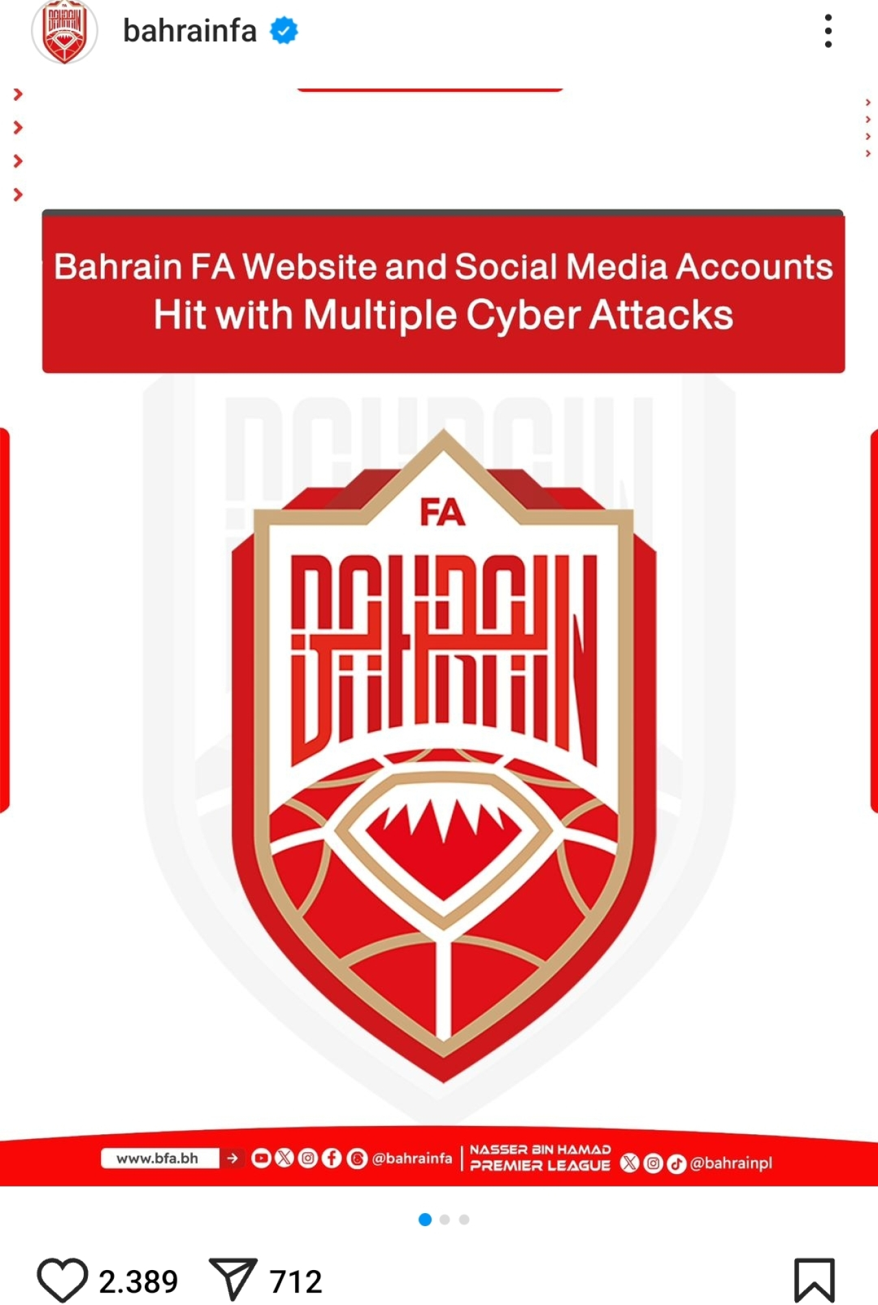RIFFA- Website hingga media sosial PSSI-nya Bahrain terkena serangan siber. Hal itu disampaikan PSSI-nya Bahrain, Bahrain Football Association di akun Instagram mereka, @bahrainfa.