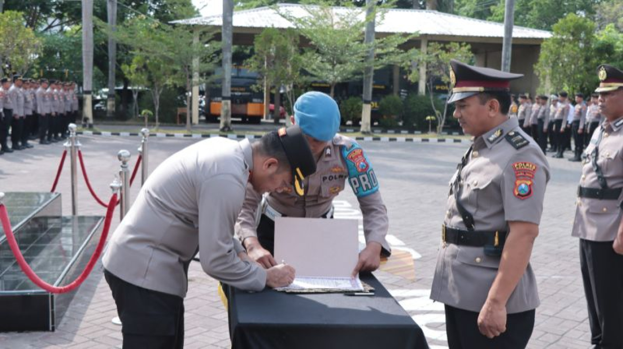 Upacara Sertijab Kapolsek dan Kasiwas tersebut berlangsung di lapangan apel Polres Nganjuk, dihadiri oleh para Pejabat Utama (PJU), Kapolsek jajaran Polres Nganjuk dan anggota Polres Nganjuk, Selasa (15/10/2024).