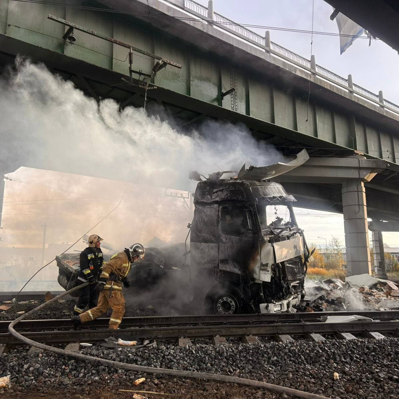 Pada hari Senin, 21 Oktober, di distrik Shushar, sebuah truk menabrak pagar jalan dan terbalik hingga terbakar, kabin mobil jatuh ke rel kereta api. Akibatnya, lalu lintas di jalan raya tersebut terhambat.