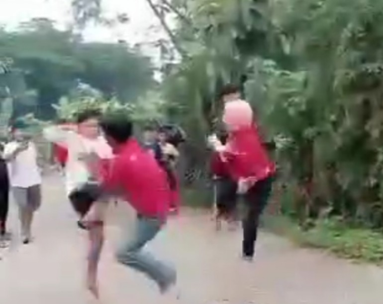 Video berdurasi 44 detik itu memperlihatkan perkelahian yang diawali dengan seorang remaja mengenakan peci hitam mendorong dua bocah hingga akhirnya pertarungan dimulai.