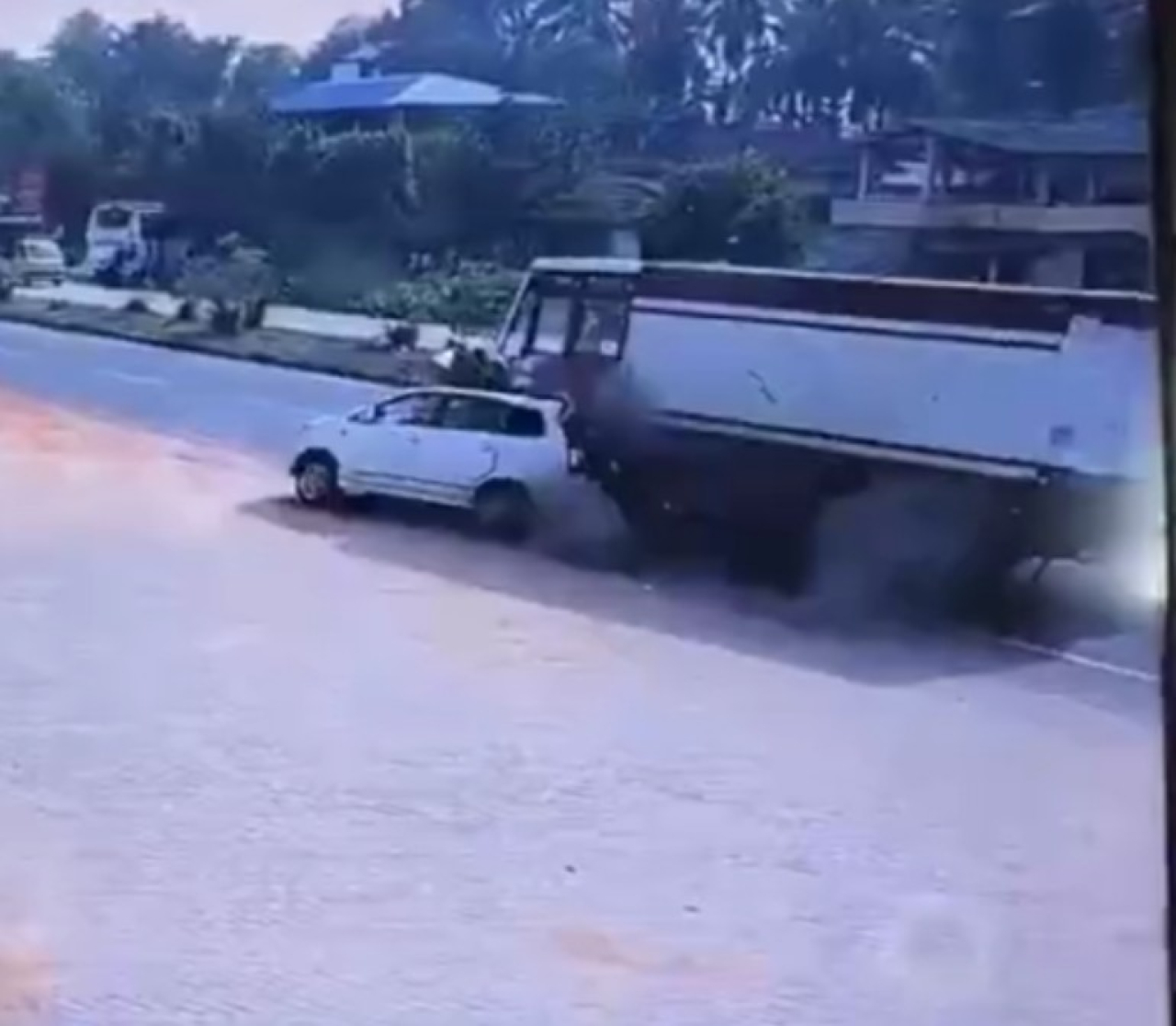 Saat mengambil jalan mundur di NH-66 untuk memasuki kuil Sri Chandika Durga Parameshwari di distrik Udupi, sebuah truk yang melaju kencang bertabrakan dengan mobil Innova dan terbalik.