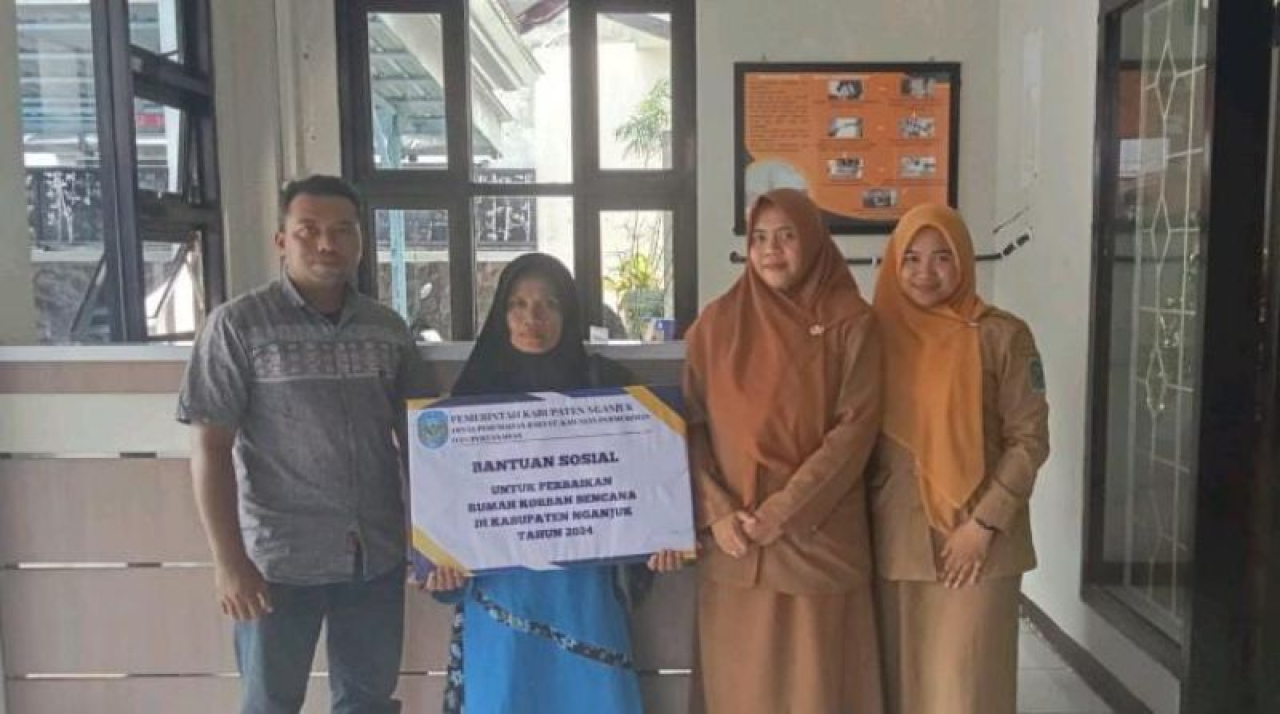 NGANJUK - Pemerintah Kabupaten Nganjuk (Pemkab Nganjuk) melalui Dinas Perumahan Rakyat, Kawasan Permukiman dan Pertanahan (DPRKPP) menyerahkan bantuan stimulan rumah layak huni untuk warga kurang mampu yang terkena bencana alam dan kebakaran. Bantuan itu diserahkan langsung oleh Pegawai Dinas Perkim Nganjuk.