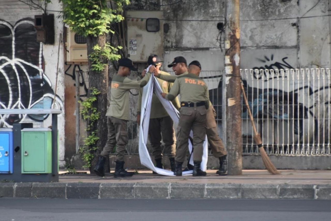 Tak hanya membersihkan sisa-sisa APS saja, Satpol PP Surabaya juga menyasar banner dan spanduk yang dipasang pada reklame insidentil, maupun yang menempel pada pohon dan tiang listrik.
