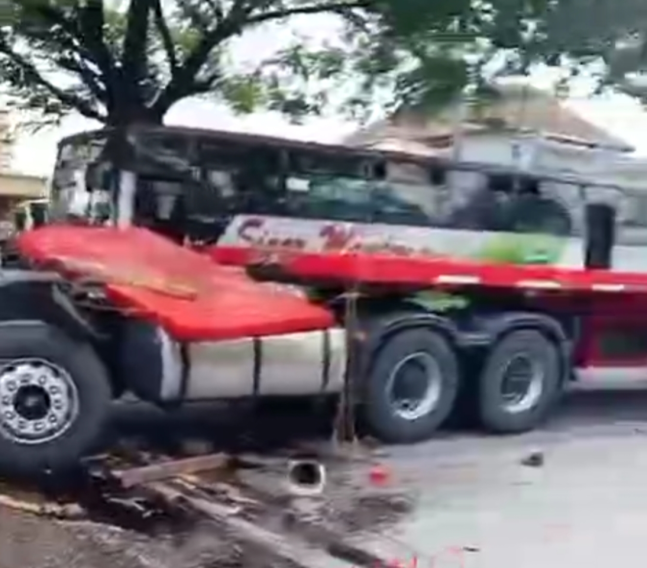 Kecelakaan itu melibatkan truk pengangkut baja seberat 52 ton, sepeda motor, dan satu kendaraan yang tidak diketahui identitasnya.