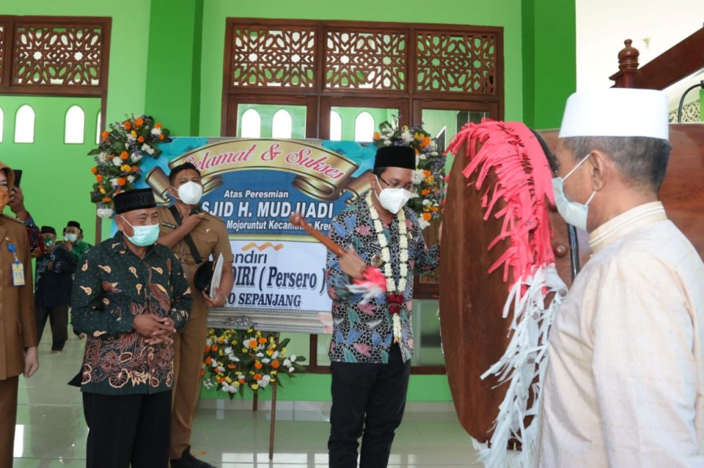 Peresmian Masjid dengan luas bangunan 1.200 meter persegi tersebut ditandai dengan pemukulan bedug serta penanaman pohon kurma di halaman masjid.