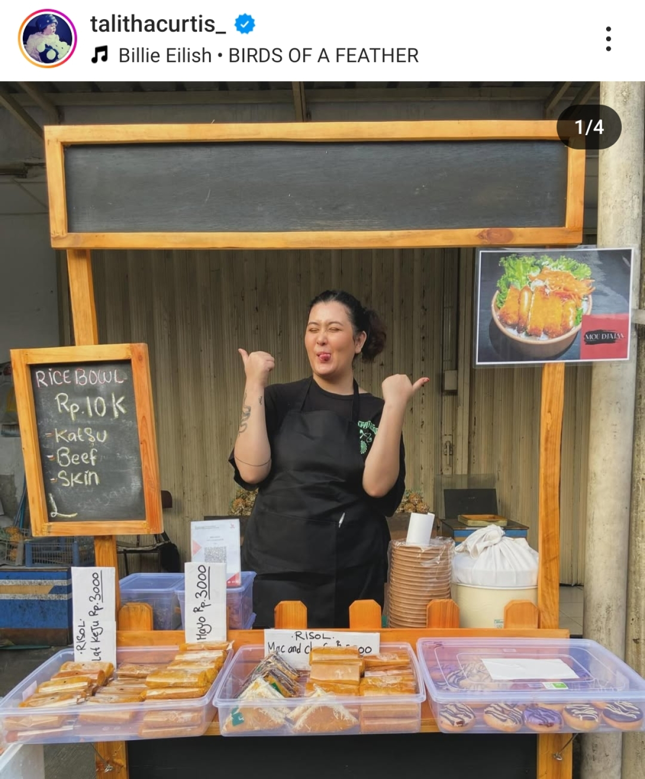"Bismillah. New journey. Alamatnya di "indomaret gaperi bojong gede" atau bisa cari di gojek gofood search aja "mnou jajan" ada di slide ke 3! See you guys," tulisnya dalam Instagram miliknya.