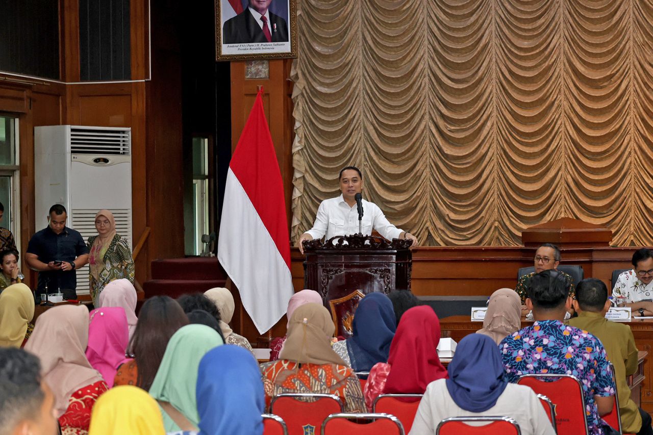 SURABAYA (Realita)- Wali Kota Surabaya, Eri Cahyadi mengumpulkan jajaran kepala perangkat daerah (PD) di Graha Sawunggaling, Kamis, (2/1/2025). Mulai dari Sekretaris Daerah (Sekda), Asisten, Kepala Dinas, Camat, hingga Lurah di lingkungan Pemerintah Kota (Pemkot) Surabaya.