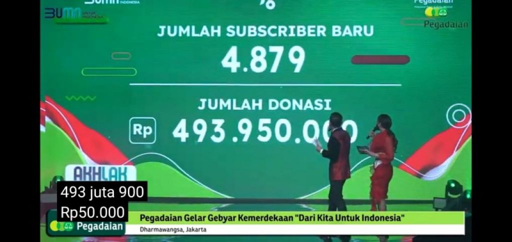Sampai akhir acara konser yang disiarkan langsung via Youtube Pegadaian ini disaksikan oleh 23,000 penonton dengan penambahan subscribers 4.879. Atas penambahan subscribe ini Pegadaian mengkonversi dengan donasi sebanyak Rp.493.950.000. Sementara itu pengumpulan donasi dari Direksi, Komisaris dan Insan Pegadaian terkumpul Rp.250 juta.