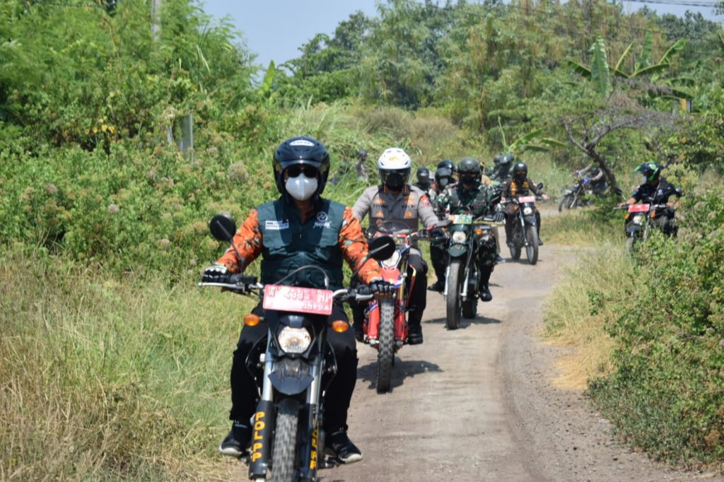 SIDOARJO (Realita)- Forkopimda Sidoarjo mengendarai motor trail mengecek pelaksanaan vaksinasi Covid-19 on the road di wilayah terpencil. Tepatnya di Dusun Kalialo, Desa Kupang, Kecamatan Jabon, Kabupaten Sidoarjo, Sabtu (28/8/2021) siang.