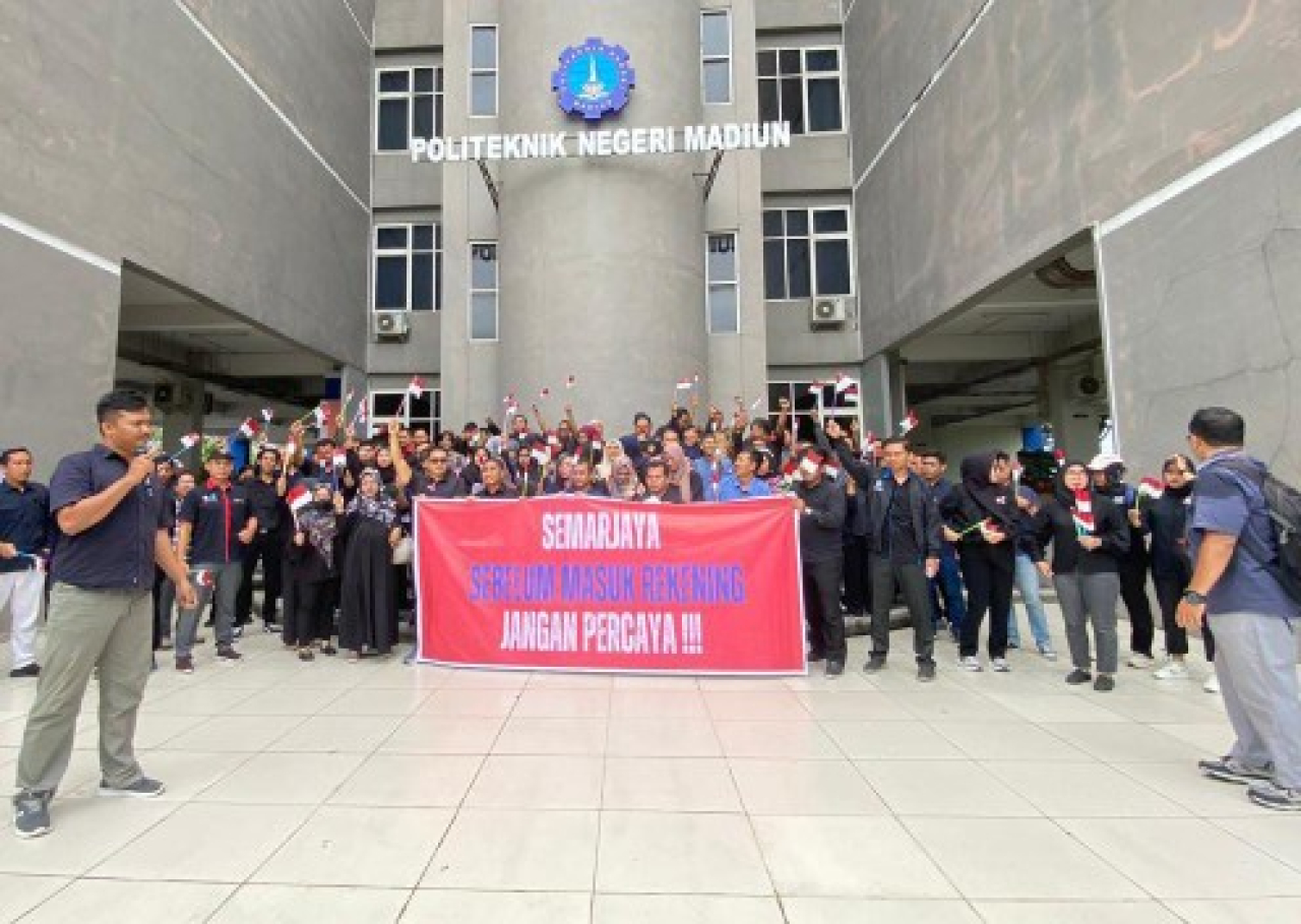 MADIUN (Realita) – Kekesalan dosen aparatur sipil negara (ASN) di Lembaga Layanan Pendidikan Tinggi (LLDIKTI) sudah tak terbendung lagi. Para dosen menggelar aksi demonstrasi menuntut tunjangan kinerja (tukin) sejak 2020 silam yang tak kunjung dibayar. Aksi unjuk rasa itu digelar di kampus Politeknik Negeri Madiun (PNM), Kamis (23/1/2025).