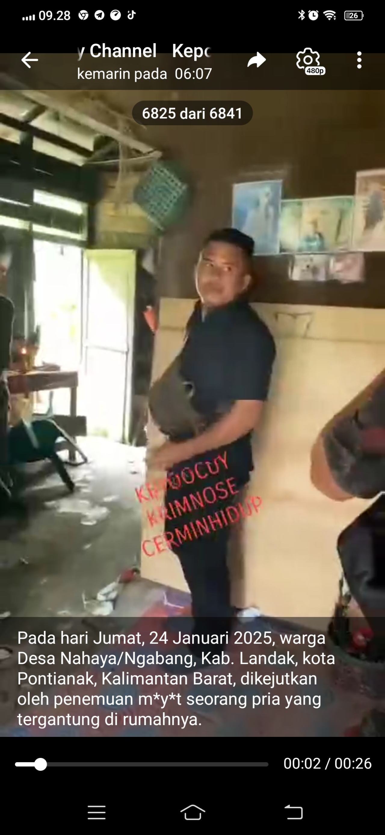 PONTIANAK (Realita)- Pada hari Jumat, 24 Januari 2025, warga Desa Nahaya/Ngabang, Kab. Landak, kota Pontianak, Kalimantan Barat, dikejutkan oleh penemuan mayat seorang pria yang tergantung di rumahnya.