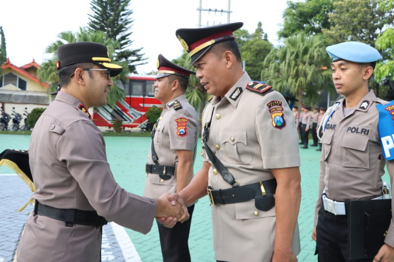 Prosesi Serah Terima Jabatan (Sertijab) dipimpin langsung Kapolres Batu, AKBP andi Yudha Pranata, di Lapangan Apel Polres Batu, Senin (3/2/2025).