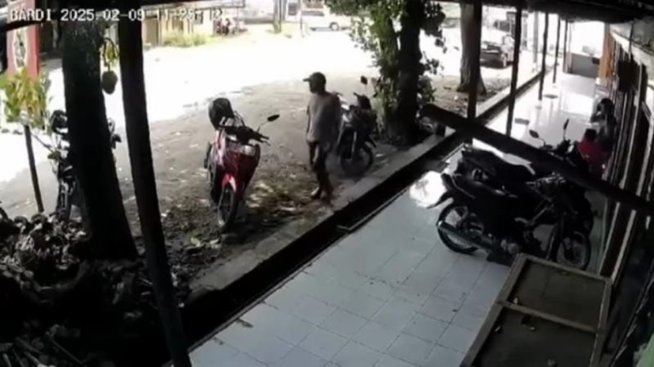 Aksi pencurian itu terekam CCTV warung sate, terlihat jelas pencuri motor merupakan seorang pria bertopi memakai kaos berwarna abu-abu.