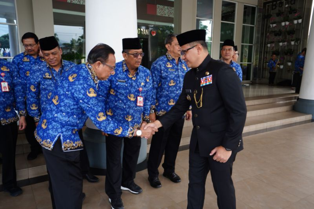Pj. Wali Kota Batu Aries Agung Paewai mengingatkan kepada seluruh ASN agar selalu bekerja dengan hati, bekerja dengan ikhlas, serta meningkatkan kualitas pelayanan kepada masyarakat.