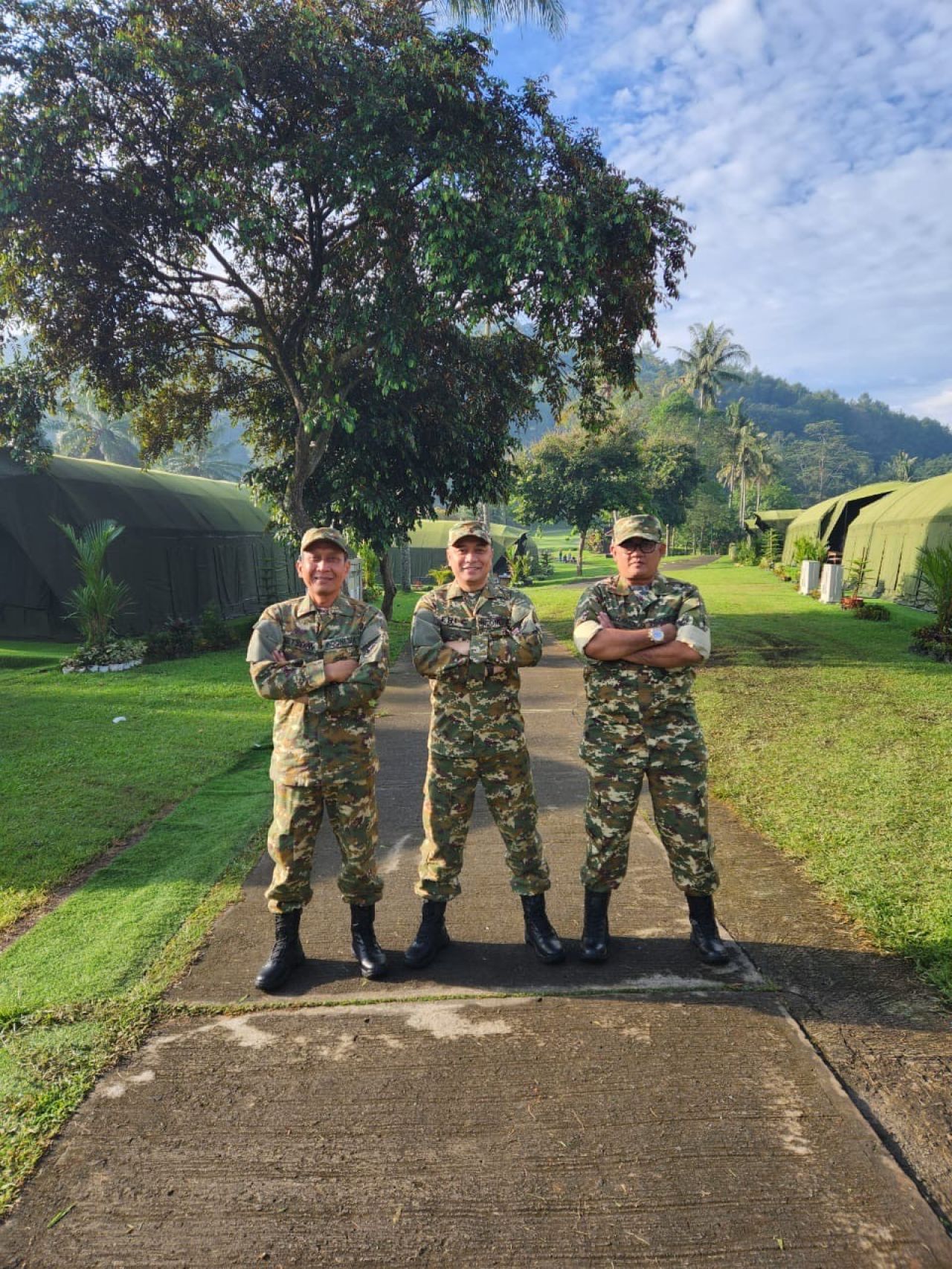 “Suasana di depan tenda E1-12, kami mengenakan seragam Komcad untuk segera mengikuti pelatihan dan pembelajaran. Mohon doanya untuk Surabaya agar semakin maju, semua program yang telah dicanangkan berjalan baik, dan membawa Surabaya terus berkembang secara berkelanjutan,” ujar Wali Kota Eri.