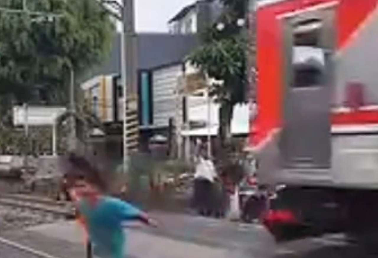 Insiden ini terjadi saat anak tersebut nekat melintas tanpa menyadari kedatangan kereta yang melaju kencang dari sebelah kanan.