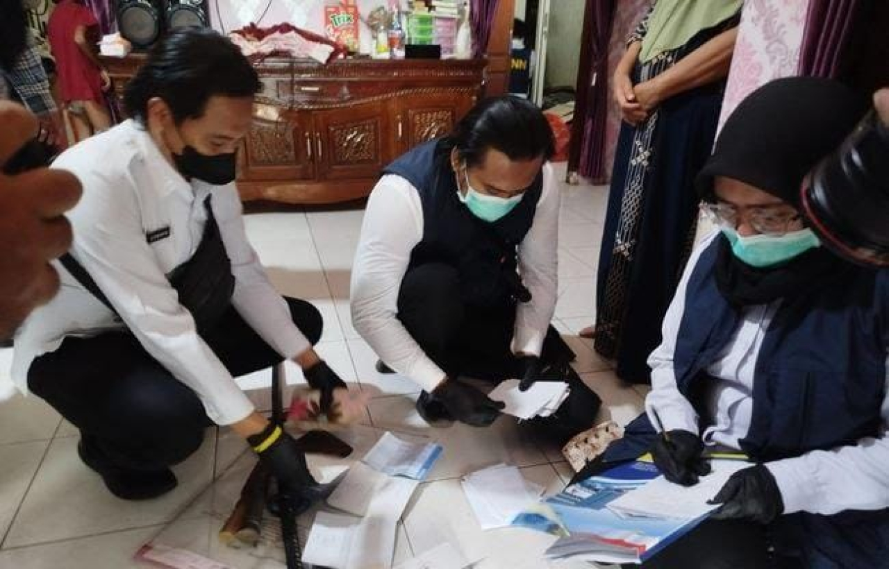 Penggeledahan berlangsung selama 2 jam, disaksikan oleh perangkat desa dan ibu-ibu penghuni rumah.