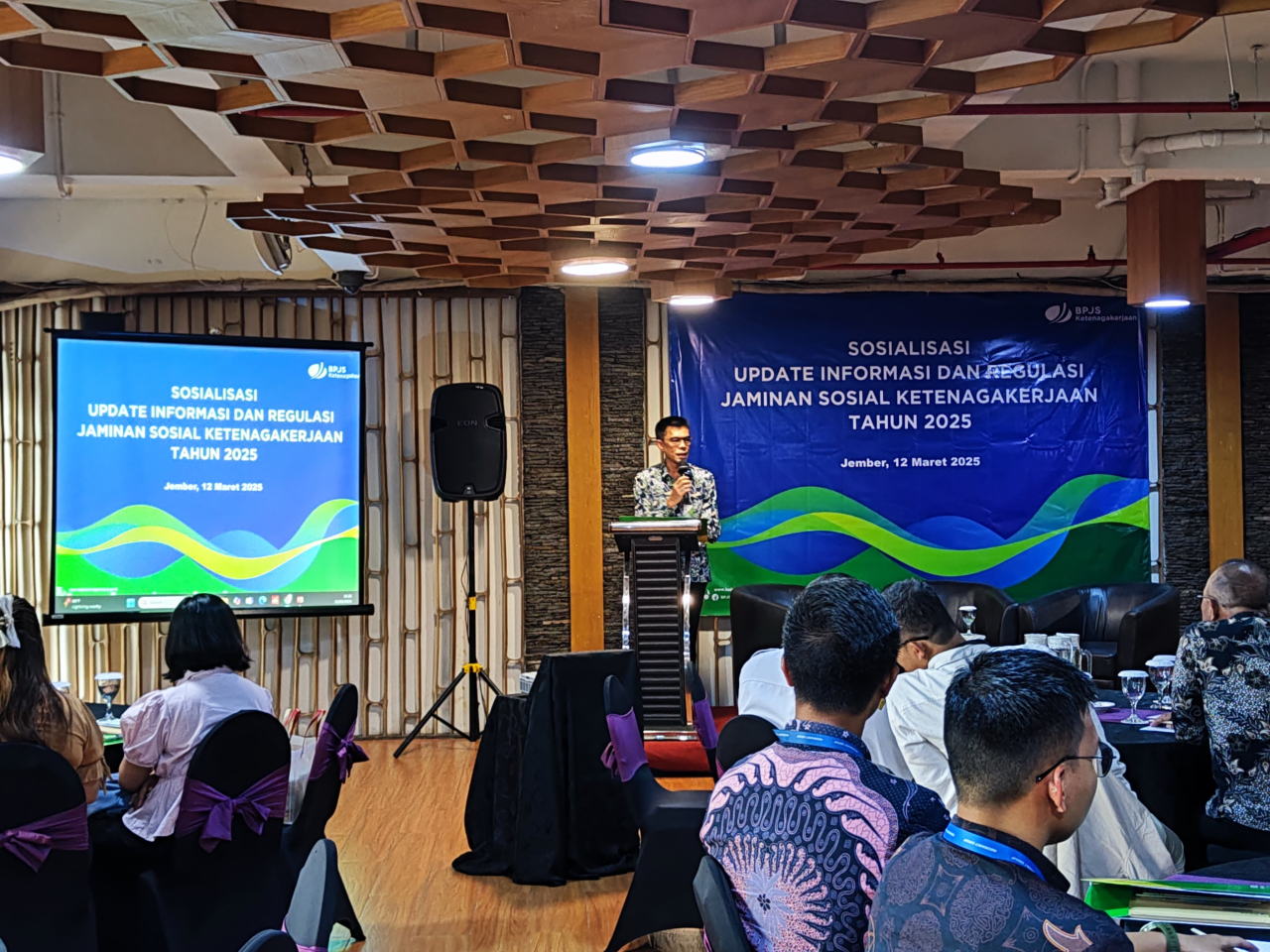 JEMBER (Realita) - BPJS Ketenagakerjaan Cabang Jember gelar Update Informasi dan Regulasi Jaminan Sosial Ketenagakerjaan Tahun 2025 ke para pelaku usaha dan badan usaha di Meeting Room Hotel Aston Jember, Rabu (12/3/2025).