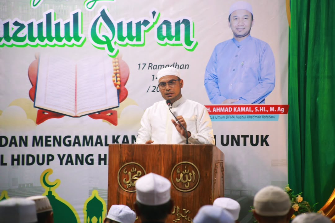 Wakil Bupati Kotabaru, Syairi Mukhlis, dalam sambutannya mengapresiasi panitia Masjid Agung Husnul Khatimah atas terselenggaranya acara ini. Ia mengajak seluruh masyarakat untuk menjadikan peringatan Nuzulul Qur'an sebagai momentum meningkatkan pemahaman dan pengamalan Al-Qur'an.