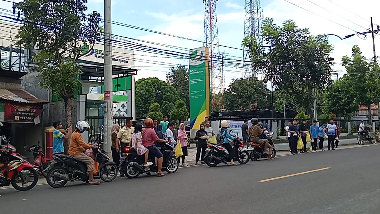 Paket takjil gratis berisikan snack dan air minum itu dibagikan kepada masyarakat yang melintas di depan Kantor BPJS Ketenagakerjaan Madiun.