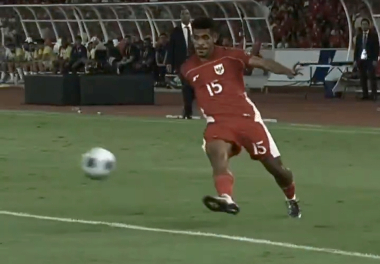 Dalam situasi serangan, Ricky Kambuaya yang berada di area kiri penyerangan Timnas Indonesia melihat ada Eliano Reijnders di kotak penalti Bahrain. Tanpa pikir panjang, pemain yang telah mencetak dua gol dan lima assist di Liga 1 2024-2025 ini langsung melepaskan umpan trivela menggunakan kaki kanannya.