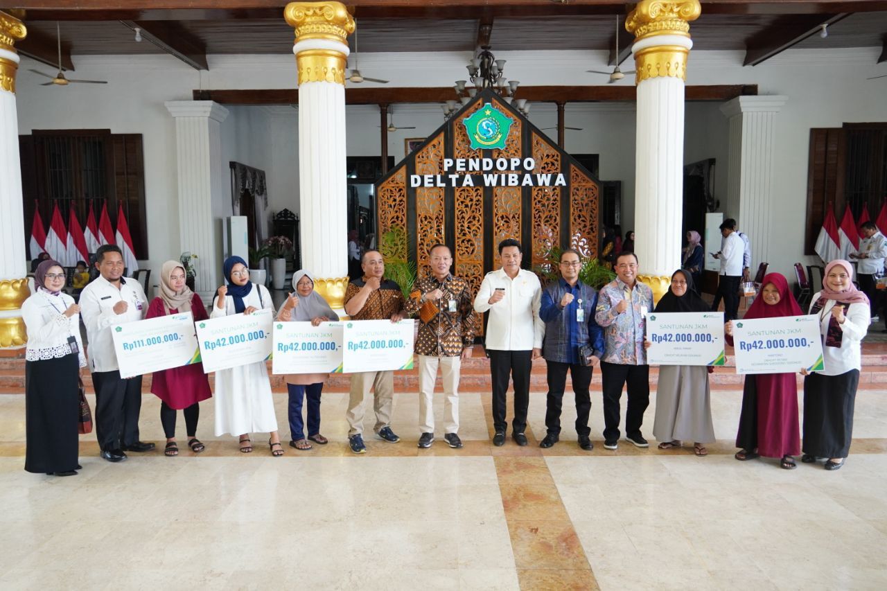 Bupati Sidoarjo, H. Subandi, S.H., M.Kn., dalam sambutannya menyampaikan apresiasi kepada BPJS Ketenagakerjaan atas kerja sama yang telah berjalan dan manfaat yang dirasakan masyarakat.