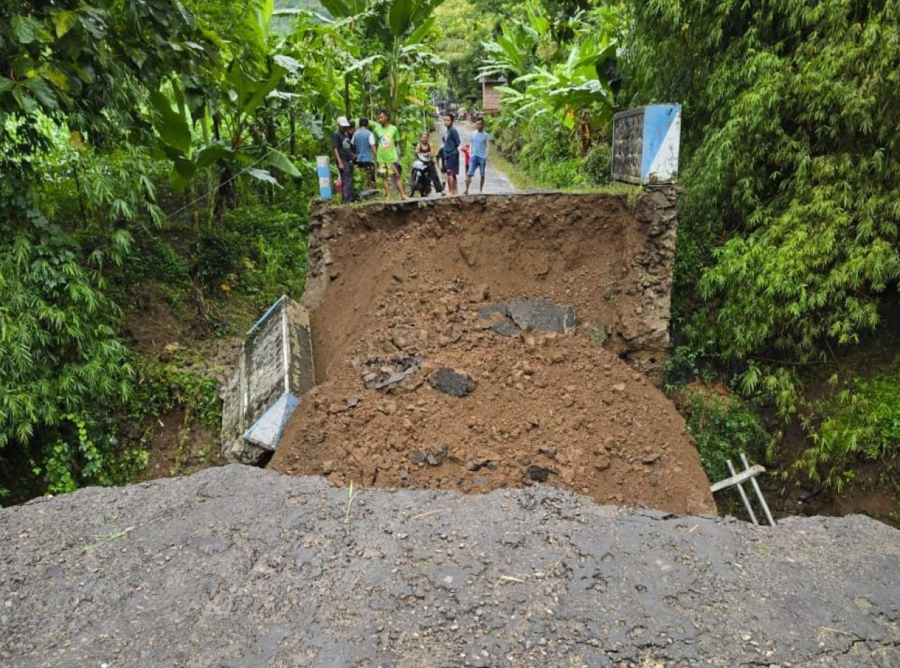 " Tadi jam 03.00 pagi putusnya, akibat banjir bandang sungai Mingging," ujar warga setempat Agus.