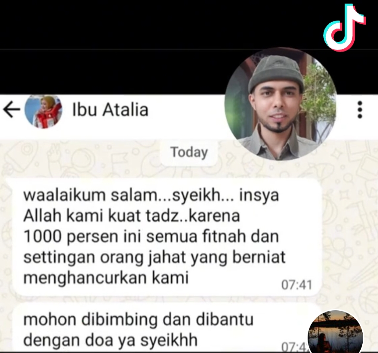 “Syeikh insya Allah kami kuat taz, karena 1000 persen ini semua fitnah dan settingan orang jahat yang berniat menghancurkan kami,” tulis Atalia dalam pesan yang ditampilkan Yazen, dikutip Sabtu (5/4/2025).