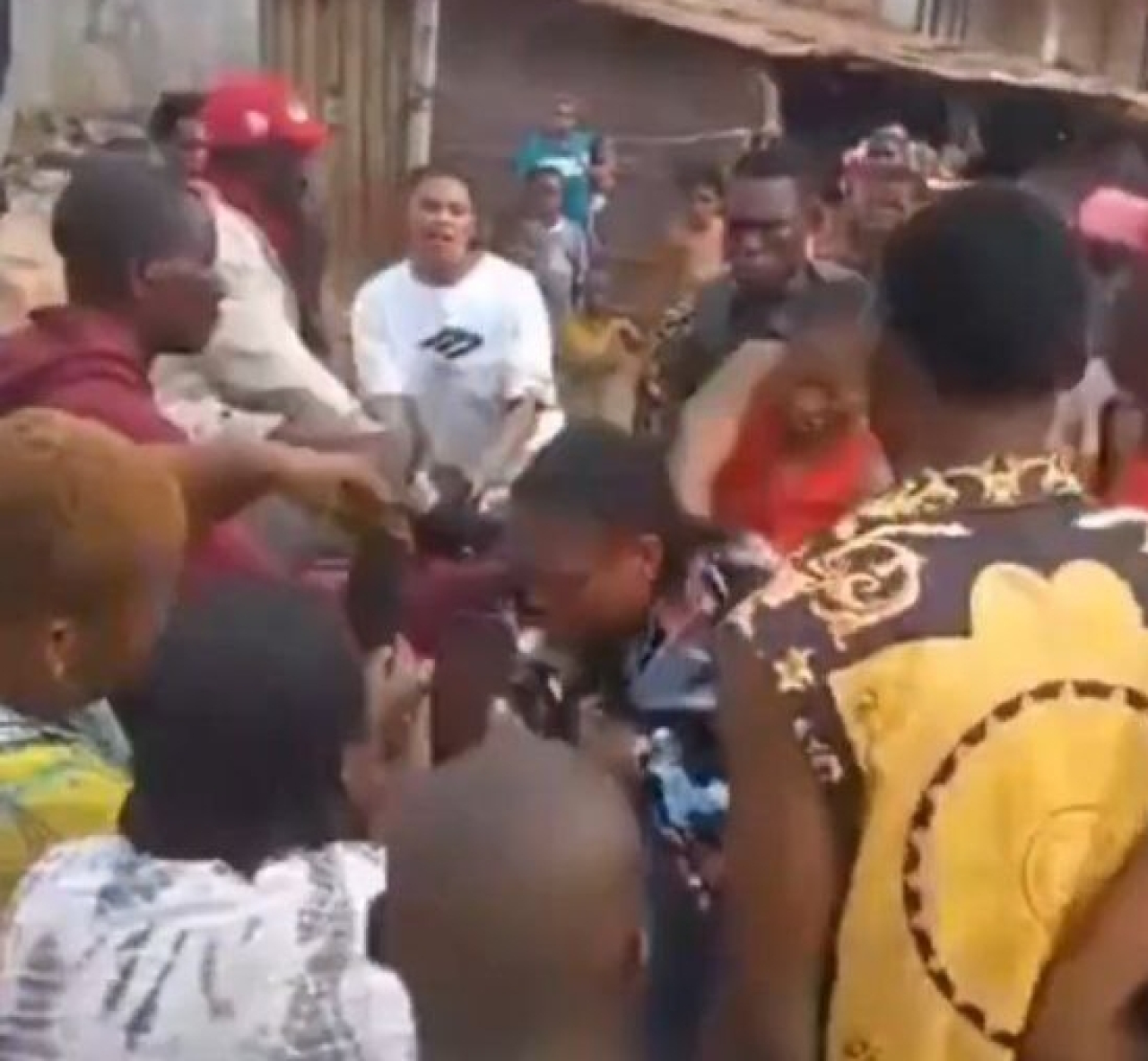 Wanita itu terlihat berusaha menaiki sepeda motor ketika massa yang marah menyerangnya. Dia diseret ke tanah, pakaiannya di robek, dan celananya ditarik hingga ke lutut.