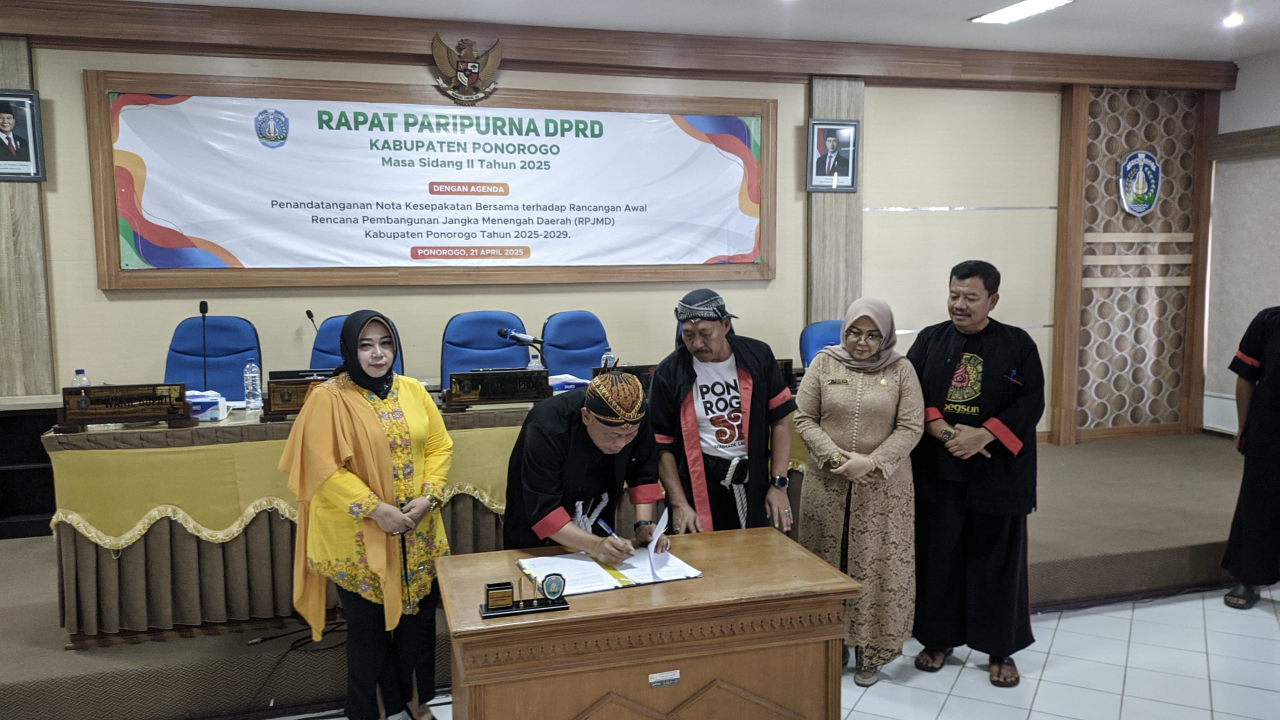 PONOROGO (Realita)- Pembahasan Rencana Awal (Ranwal) Rancangan Pembangunan Jangka Menengah Daerah (RPJMD) Kabupaten Ponorogo tahun 2025-2029 telah menemui jalan akhir. Ini setelah Dewan Perwakilan Rakyat Daerah (DPRD) dan Pemkab Ponorogo sepakat tentang draft isi visi-misi Bupati dan Wakil Bupati Ponorogo untuk 5 tahun kedepan tersebut.