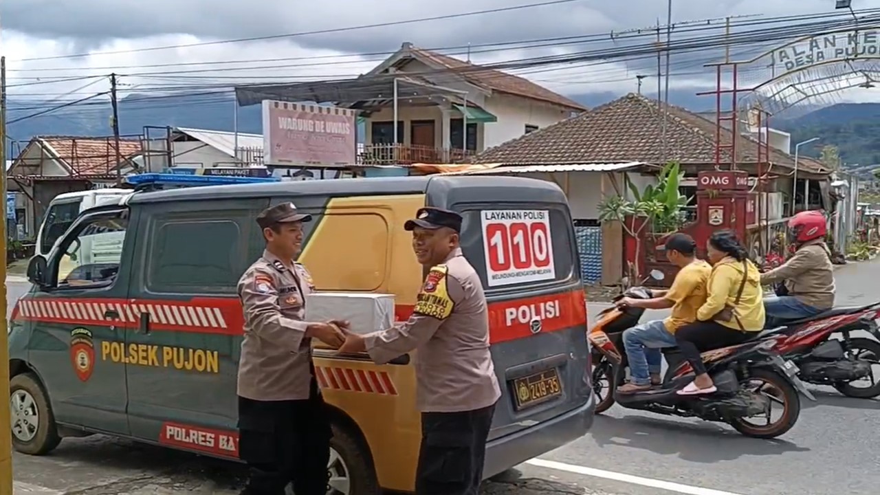 Aiptu Mundur dan Bripka Rio mendatangi salah satu warga yang bernama Ibu Indiyah yang beralamatkan di Dsn.Krajan Desa Pujon Lor Pujon untuk memberikan bantuan sosial berupa paket sembako."Semoga bantuan yang kami berikan ini bisa bermanfaat," ujar Bripka Rio.