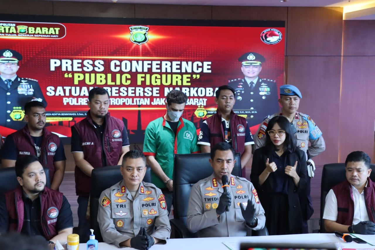 Dalam konferensi pers yang digelar Kamis, 24 April 2025, Kapolres Metro Jakarta Barat Kombes Pol Twedi Aditya Bennyahdi menyampaikan, bahwa barang bukti yang ditemukan terdiri dari sabu, ganja, kokain, dan obat penenang alprazolam.