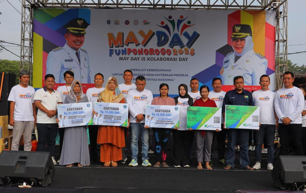 PONOROGO (Realita)- Momen peringatan Hari Buruh Internasional atau May Day pada 1 Mei yang digelar di depan Paseban Aloon-Aloon Ponorogo, dimanfaatkan BPJS Ketenagakerjaan untuk mendorong peningkatan perlindungan bagi pekerja, khususnya di wilayah Ponorogo, Sabtu (03/05/2025).