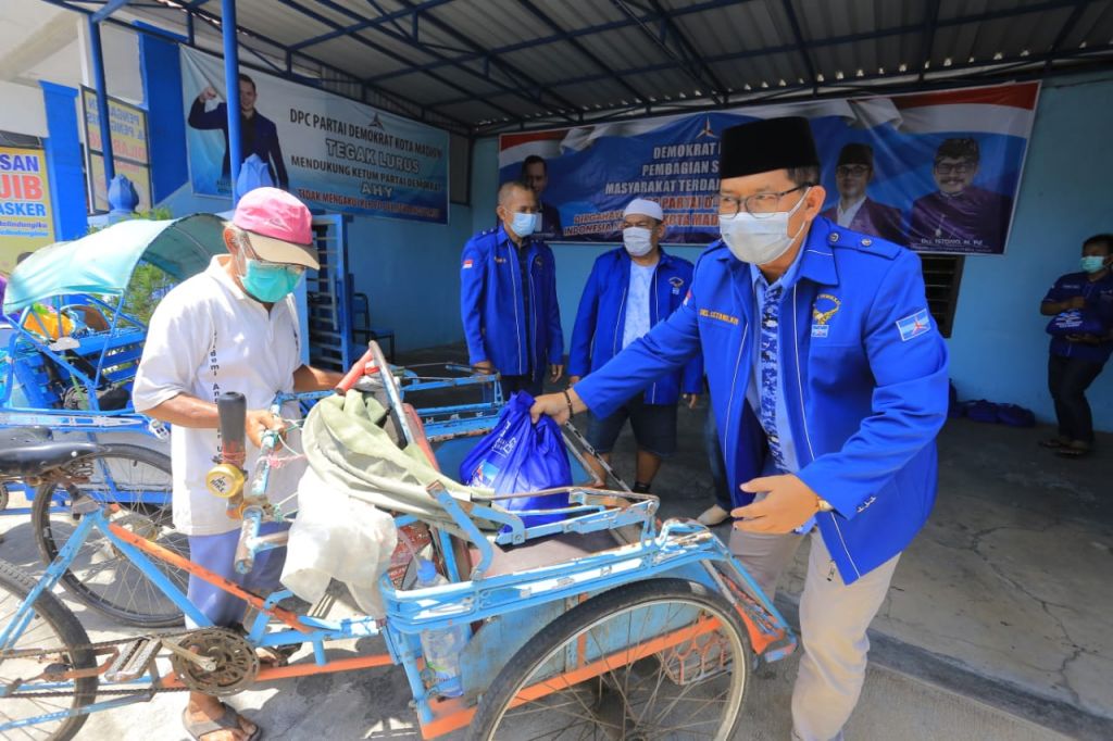 MADIUN (Realita) - Partai Demokrat merayakan ulang tahunnya ke-20, Kamis (9/9/2021). Acara ini disambut jajaran DPC Partai Demokrat Kota Madiun dengan bagi-bagi sembako, tasyukuran dan zoom meeting bersama DPP.