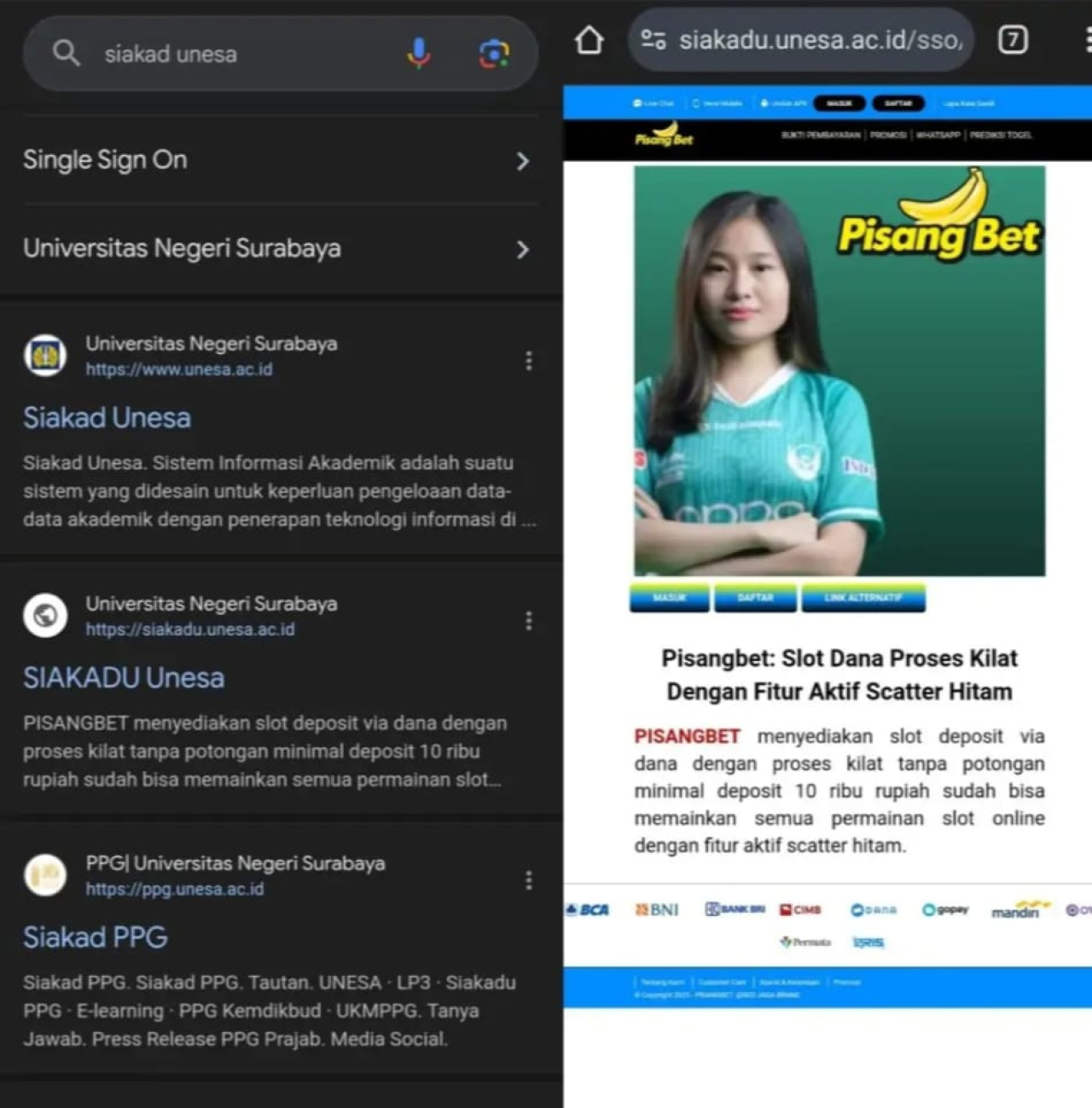 Ceritanya, pada Jumat (25/4/2025) lalu, Website yang biasa disebut Sistem Informasi Akademik Terpadu (Siakadu) Unesa yang terintegrasi dalam portal SSO Unesa, diretas dan sempat menampilkan pamflet promosi judi online (judol) di halaman akses mahasiswa.