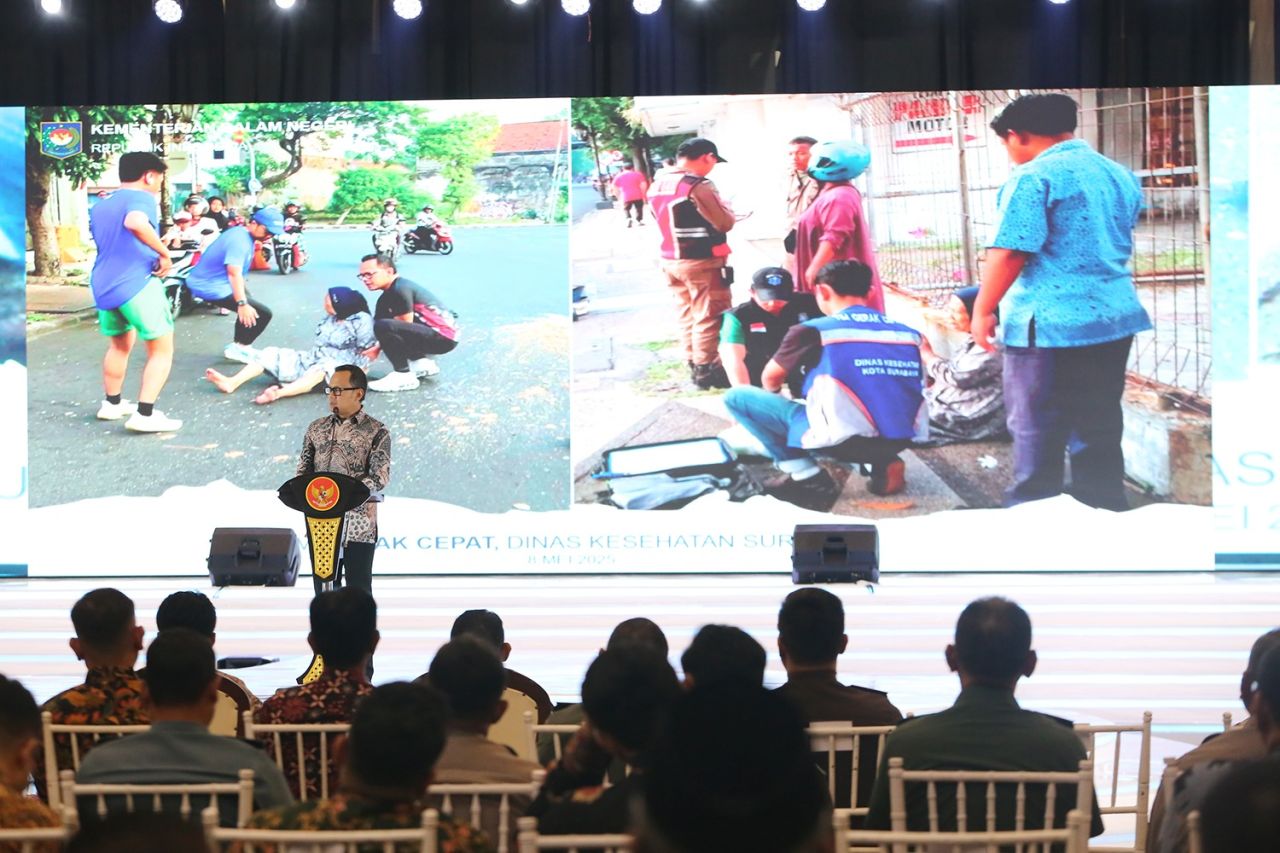 Dalam sambutannya, Wamendagri Bima Arya memberikan apresiasi terhadap kecepatan respons Tim Gerak Cepat (TGC) Pemerintah Kota Surabaya dalam menangani kejadian darurat. Ia menyebut kecepatan TGC Surabaya melampaui daerah-daerah lain di Indonesia.