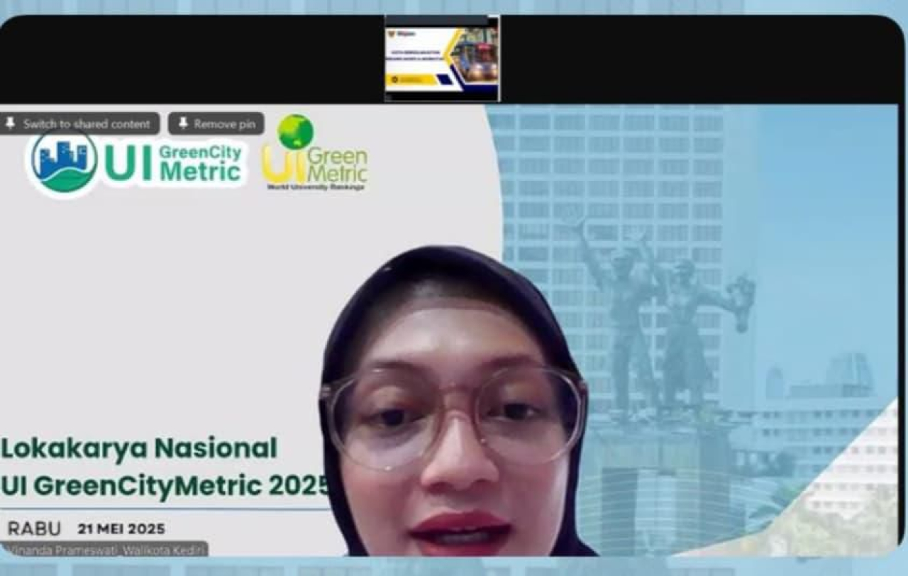 KEDIRI (Realita) - Wali Kota Kediri, Vinanda Prameswati menjadi pembicara dalam lokakarya nasional UI Green City Metric. Lokakarya Nasional ini dilaksanakan secara daring dengan mengundang seluruh pemerintah kabupaten dan kota se-Indonesia, Rabu, 21 Mei 2025.