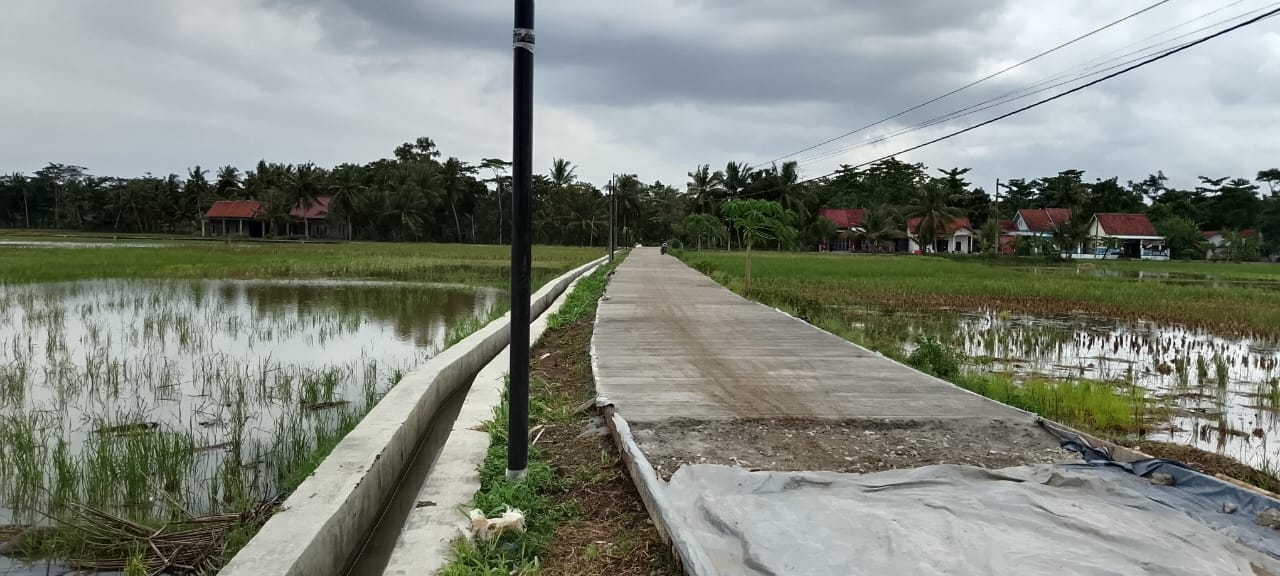 Jalan rabat beton yang dibangun dengan panjang 850 meter x lebar 4 meter, dan panjang 400 meter x lebar 3 meter, ini merupakan akses vital bagi warga desa, yang selama ini harus melewati jalur berlumpur saat musim hujan.